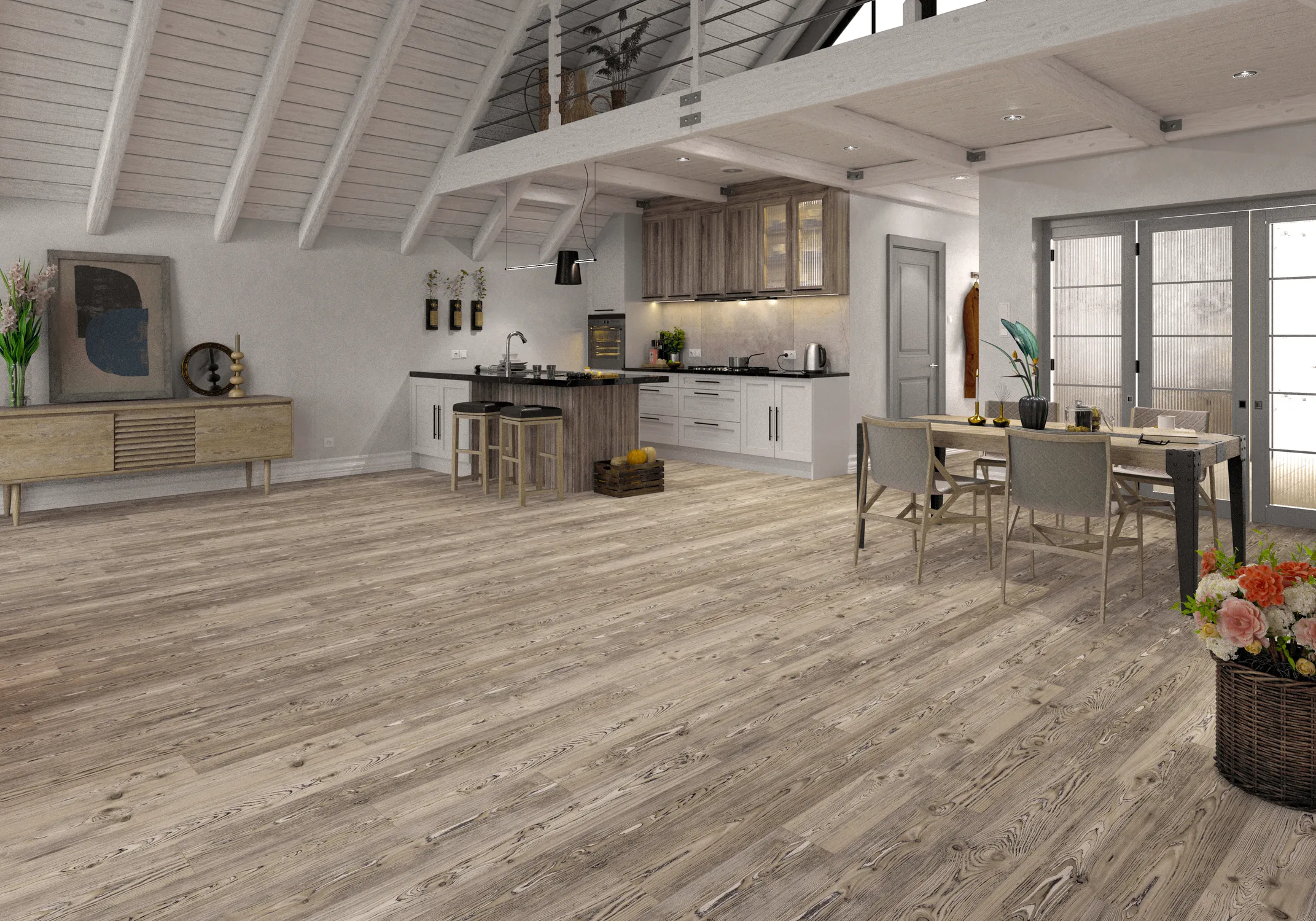 Сосна Корнелис — серо-бежевый оттенок с текстурой натуральной сосны создаст в интерьере атмосферу умиротворенного спокойствия, легкой прохлады и тактильного уюта. Этот сложный, нейтральный цвет послужит универсальным фоном, объединяя в себе тепло древесины и современную графичность серого, привнесет в пространство природную легкость, визуальную глубину и ощущение загородного дома, наполненного свежим воздухом и тишиной.