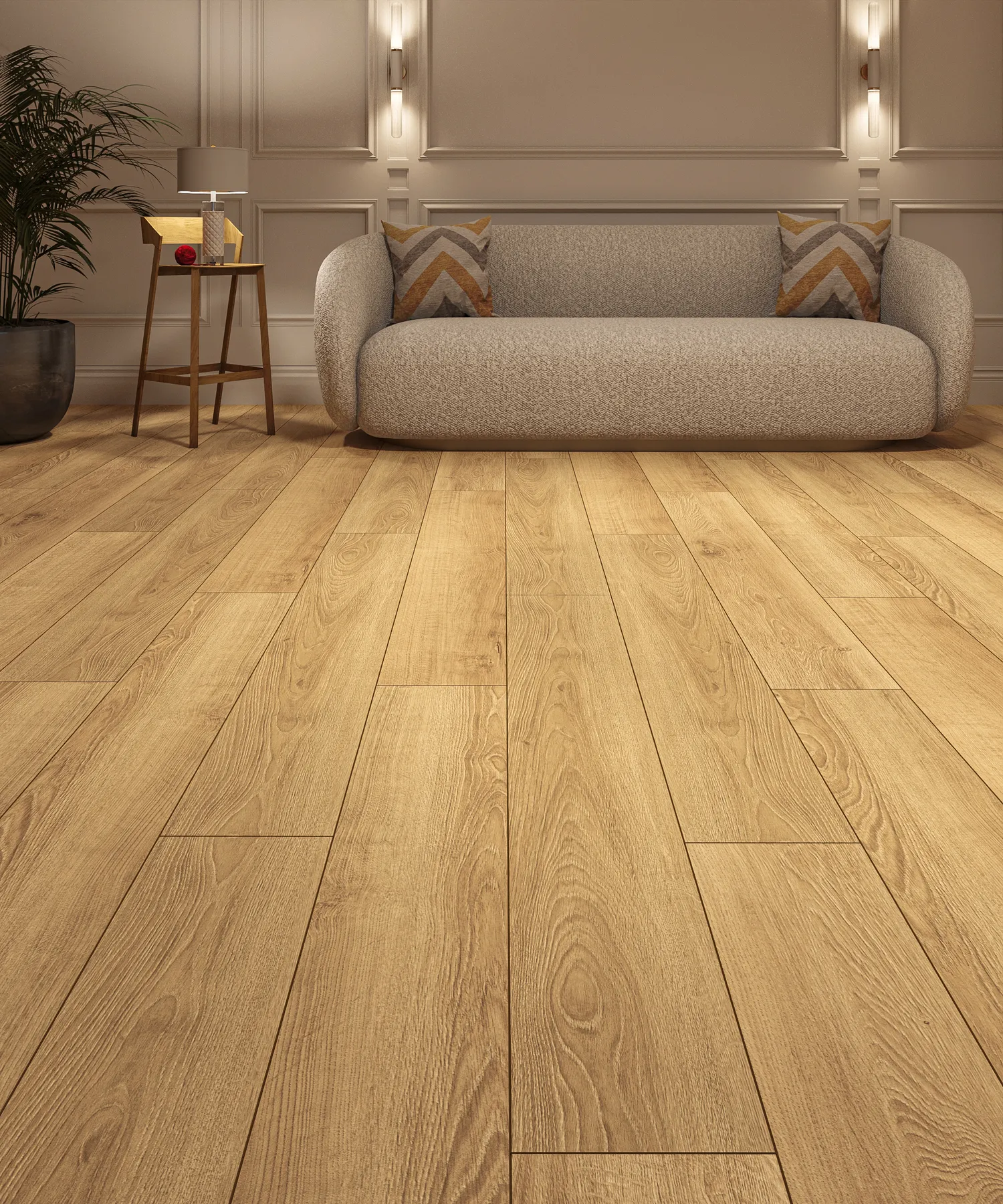Дуб Лион — насыщенный бежевый оттенок со сливочным подтоном. Этот аппетитный, обволакивающий цвет станет идеальной теплой и «вкусной» основой, наполнит пространство ощущением тепла, комфорта и домашнего уюта, создаст жизнерадостную и гостеприимную атмосферу.